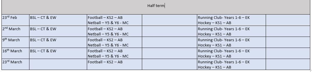 All After School Clubs start W/C 23rd February 2026.